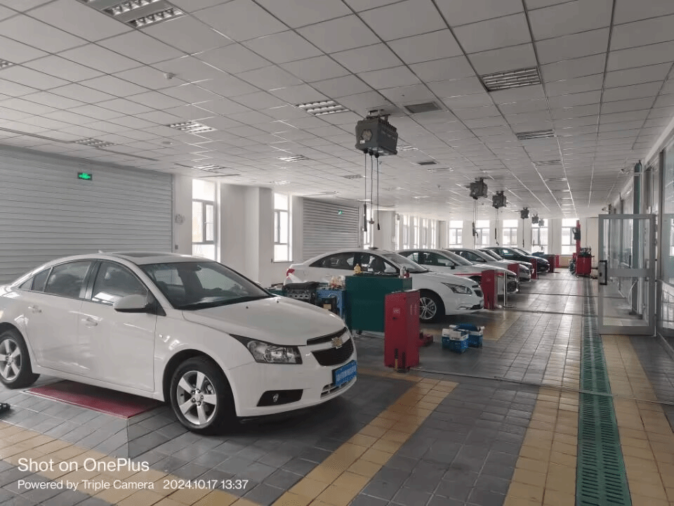 实训教学场地12个 ,占地面积20000多平方米 ,教学设备500多台( 套 ),总价值2118 .86万元,18间实训室,设备集中管理,各类设施齐全,完全能满足汽车检测与维修技术的教学、培训、竞赛等多元需求。对接真实职业场景或工作情境 ,在校内外进行汽车维护、汽车发动机检修、汽车底盘检修、汽车电气设备检修、汽车故障诊断、汽车性能检测等实训。