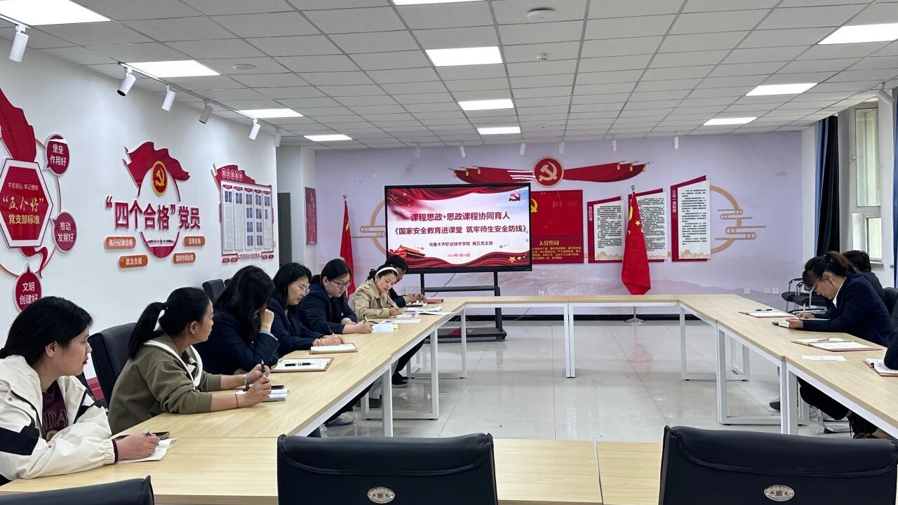活动中全体党员结合国家安全教育日及“课程思政”+“思政课程”协同育人要素,以党支部思政教研组老师高职思政课堂亮点为例,以思政课堂结合国家安全教育日作业——国家安全教育短片《欲望》的展示为途径,共同学习研讨推动“思政课程”与“课程思政”同向同行进行了深入交流。党员们纷纷表示要确保思政工作贯穿教育教学全过程。中心各类课程都承担传授知识、理论、方法、经验等职能,也都蕴含思想政治价值,体现着鲜明的价值意蕴,承载着一定的精神塑造和价值教育功能,如理想信念、家国情怀,社会担当、探索精神和创新意识等。作为乌鲁木齐职业技术学院教师我们要将立德树人作为中心环节,加强思想政治工作与各专业学科的衔接,将思政教育与教学实践相结合,贯穿到教育教学全过程中,实现全方位育人。