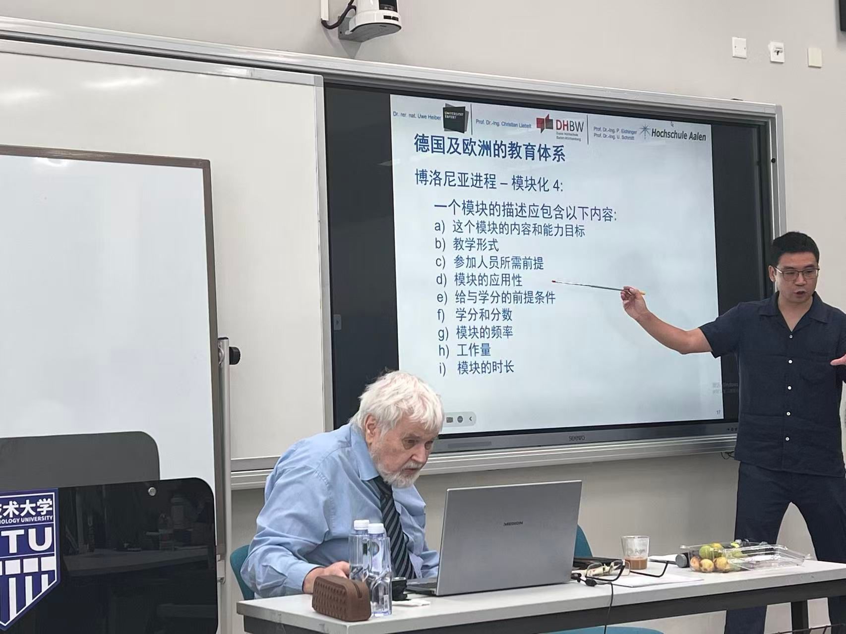 本次培训特别邀请德国职业教育专家团队,包括本哈特·布莱博教授(Bernhard Bleiber)、冯春军老师等知名专家,围绕德国职业教育体系、行动导向教学法、新能源汽车人才培养等核心内容展开系统培训。在8月11日-12日的专题报告中,布莱博教授深入解读了"数字化转型与职业教育发展趋势",并分享了德国"双元制"教学模式在中国的本土化实践案例。8月13日-15日,冯春军老师系统讲解了德国工程教育体系与核心能力框架,重点介绍了行动能力培养与行动导向教学法的具体实施策略。